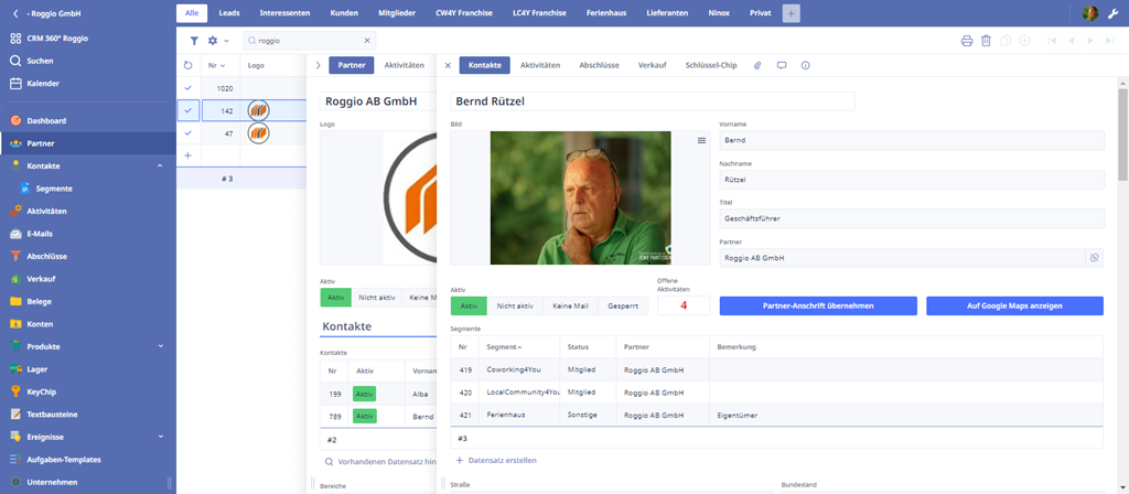 - In Zoho CRM konnten wir nur die Stammdaten unserer GmbH hinterlegen. Da wir aber noch eine Tochter- und eine Schwestergesellschaft haben, die in verschiedenen Geschäftsbereichen miteinander arbeiten, war es für uns wichtig eine zentrale Stammdatenverwaltung zu haben. Auch die Verwaltung der Nummernkreise für Angebote, Aufträge und Rechnung und übergreifende Statistiken waren für uns wichtig.