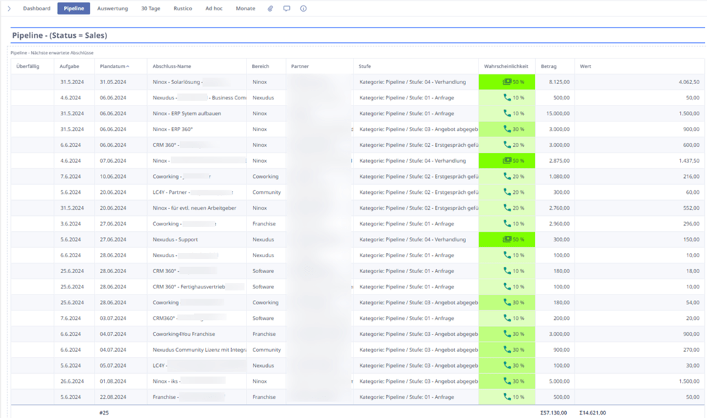 CRM 360° Sales Pipeline für verschiedene Geschäftsbereiche